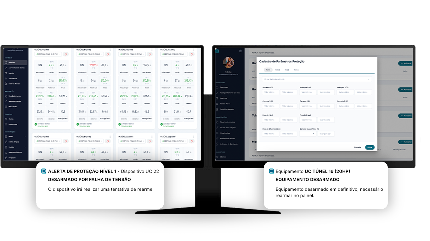 O coração da operação. Monitoramos parâmetros críticos para antecipar falhas, permitir manutenções preditivas e reduzir paradas não planejadas. Aplicamos automações de segurança que protegem os compressores contra erros operacionais e instabilidades elétricas, aumentando a vida útil dos equipamentos.
